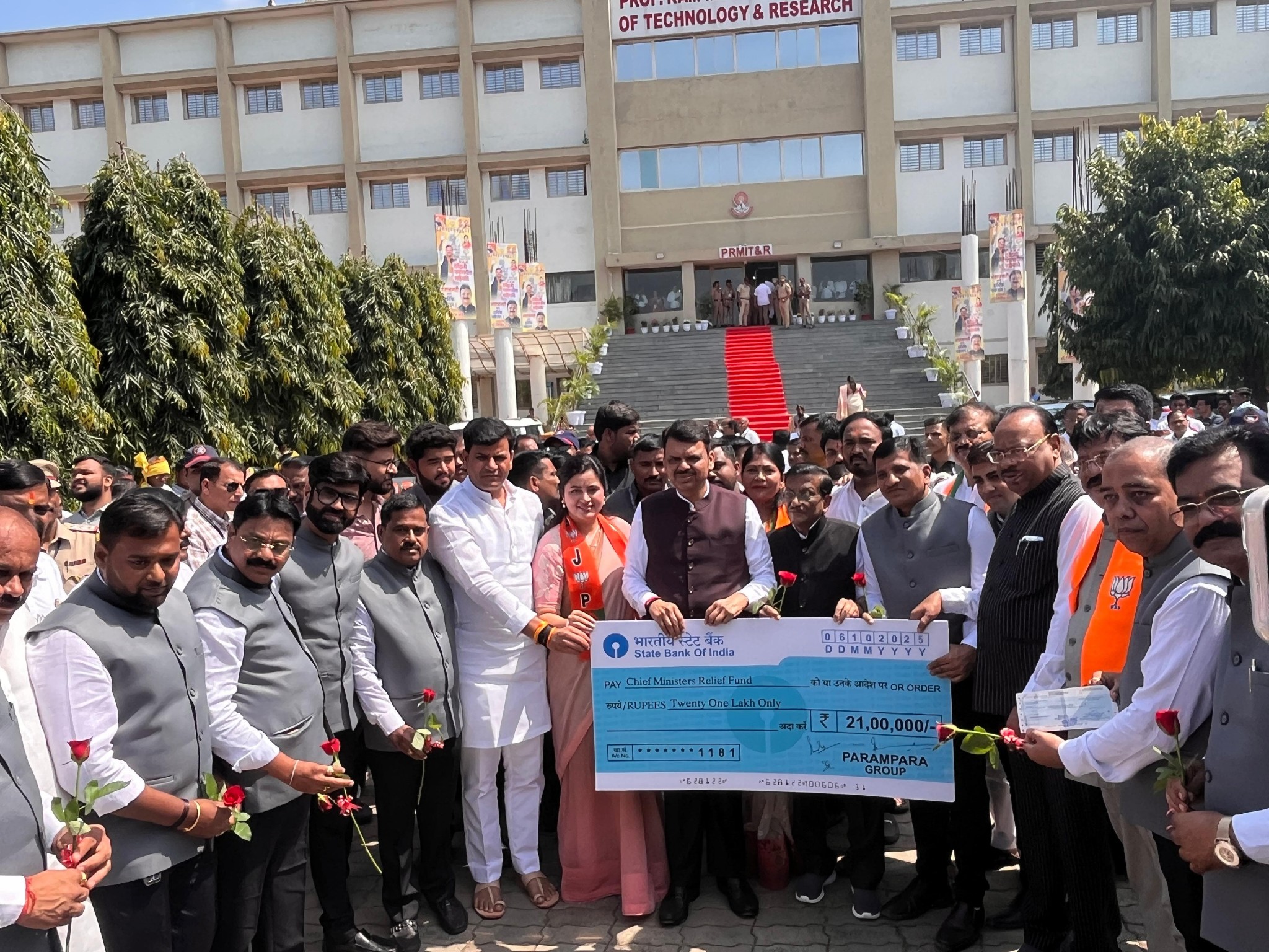 On 13 October 2025, an amount of ₹21 lakh was donated to the Chief Minister’s Relief Fund to support farmers during a difficult period. The cheque was formally handed over to Hon’ble Chief Minister Devendra Fadnavis. This contribution was made on behalf of the Hanuman Chalisa Charitable Trust, with the cooperation of the Parampara Group, as part of their ongoing commitment to assist distressed farmers.The event was graced by the presence of Revenue Minister Chandrashekhar Bawankule and BJP State President Ravindra Chavan, who appreciated the initiative and acknowledged its positive impact on farmer welfare. This noble contribution was widely recognized as a timely effort to provide relief and strengthen support systems for farmers across Maharashtra.
